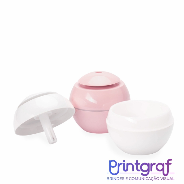 Umidificador de ar com construção em plástico, iluminação LED e reservatório de água com capacidade de até 200ml.